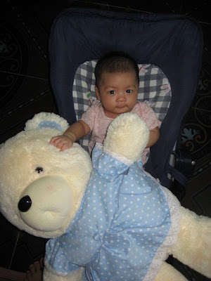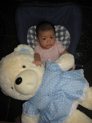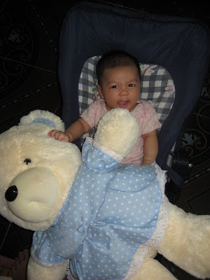 Lấy cảm hứng từ cái tên này, mẹ lại lôi con ra làm người mẫu, chụp cùng em gấu bông mà bố mẹ tặng chị Đỗ Quyên – con gái của anh trai mình.