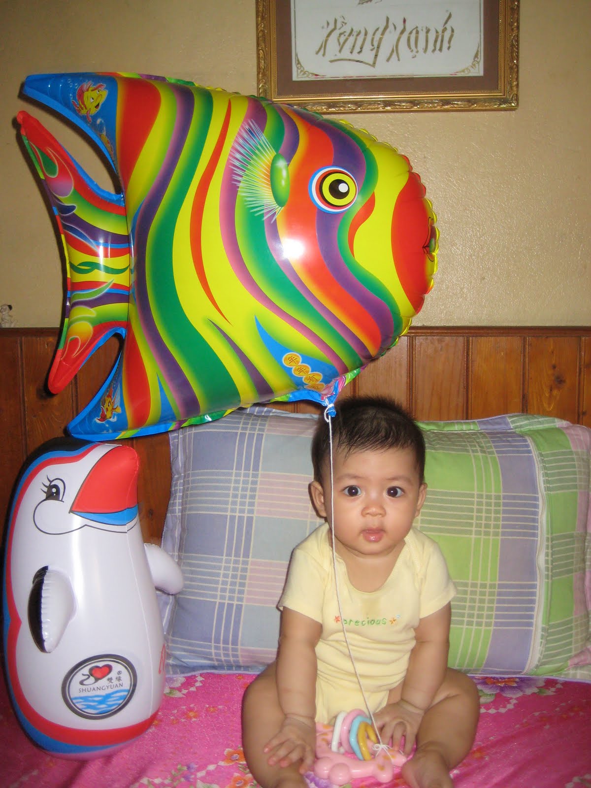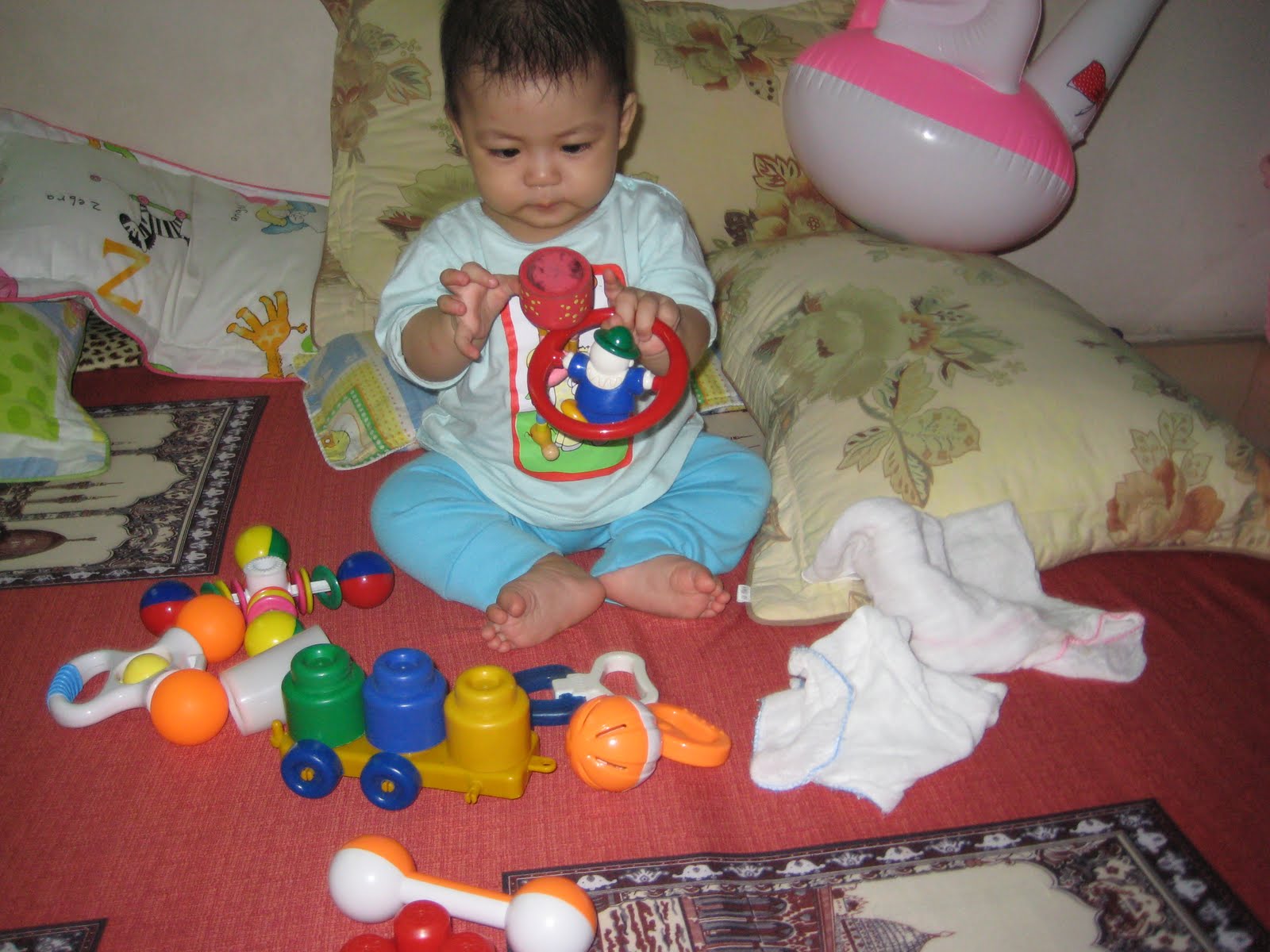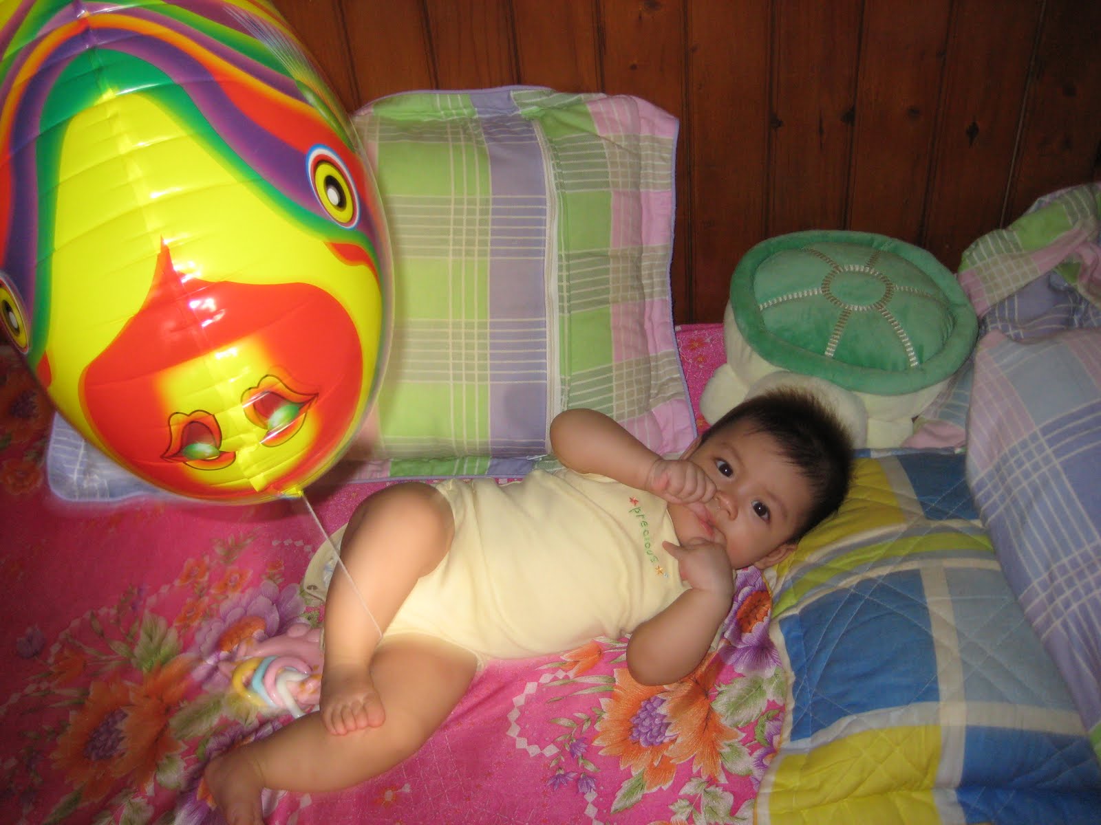 15.11.2009 – Ngỗng tròn 6 tháng tuổi, mẹ đã dự định sẽ mua 1 chiếc bánh gato để cả nhà chúc mừng, nhưng chưa thực hiện được vì con sốt hơn 39 độ. Mẹ lo cuống cả lên, nên lại cãi nhau với bố. Mãi đến chiều mẹ tìm được bác sỹ đến tận nhà khám thì yên tâm hơn 1 chút. Cho con uống thuốc hạ sốt thì con đỡ hơn, nhưng vẫn phải theo dõi. Đến tối con bắt đầu bi bô nói chuyện 1 lúc, chơi và hét mà mẹ thấy nhẹ cả người.